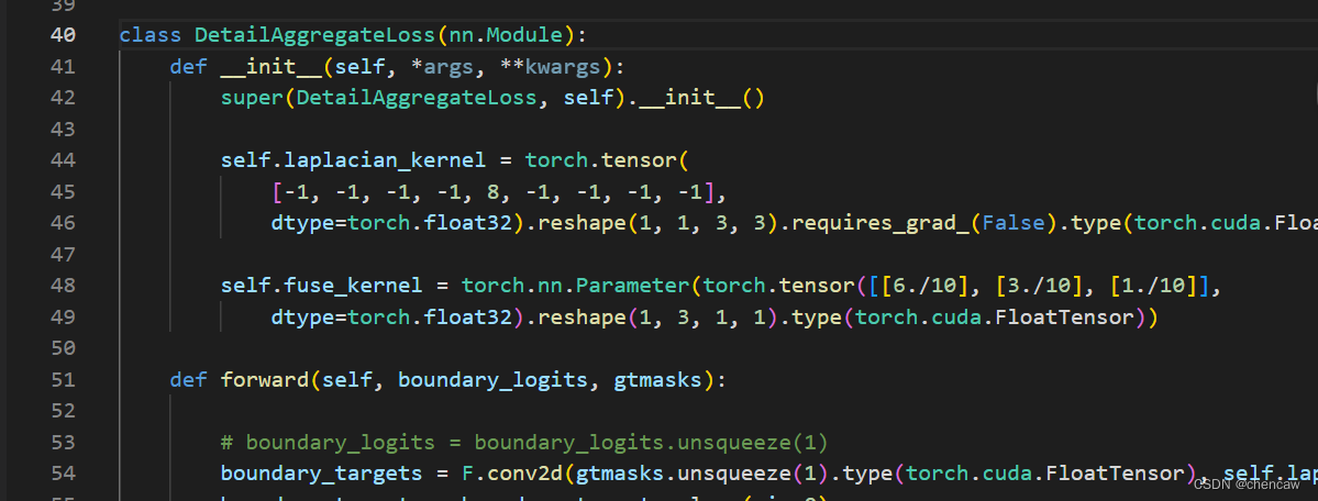 项目采用边缘细节对语义分割网络进行辅助监督,同时,监督的是:网络前端 1/8的输出,(因为网络前端的细节信息更加丰富),边缘细节的 target 采用 拉普拉斯卷积核和语义label卷积得到。