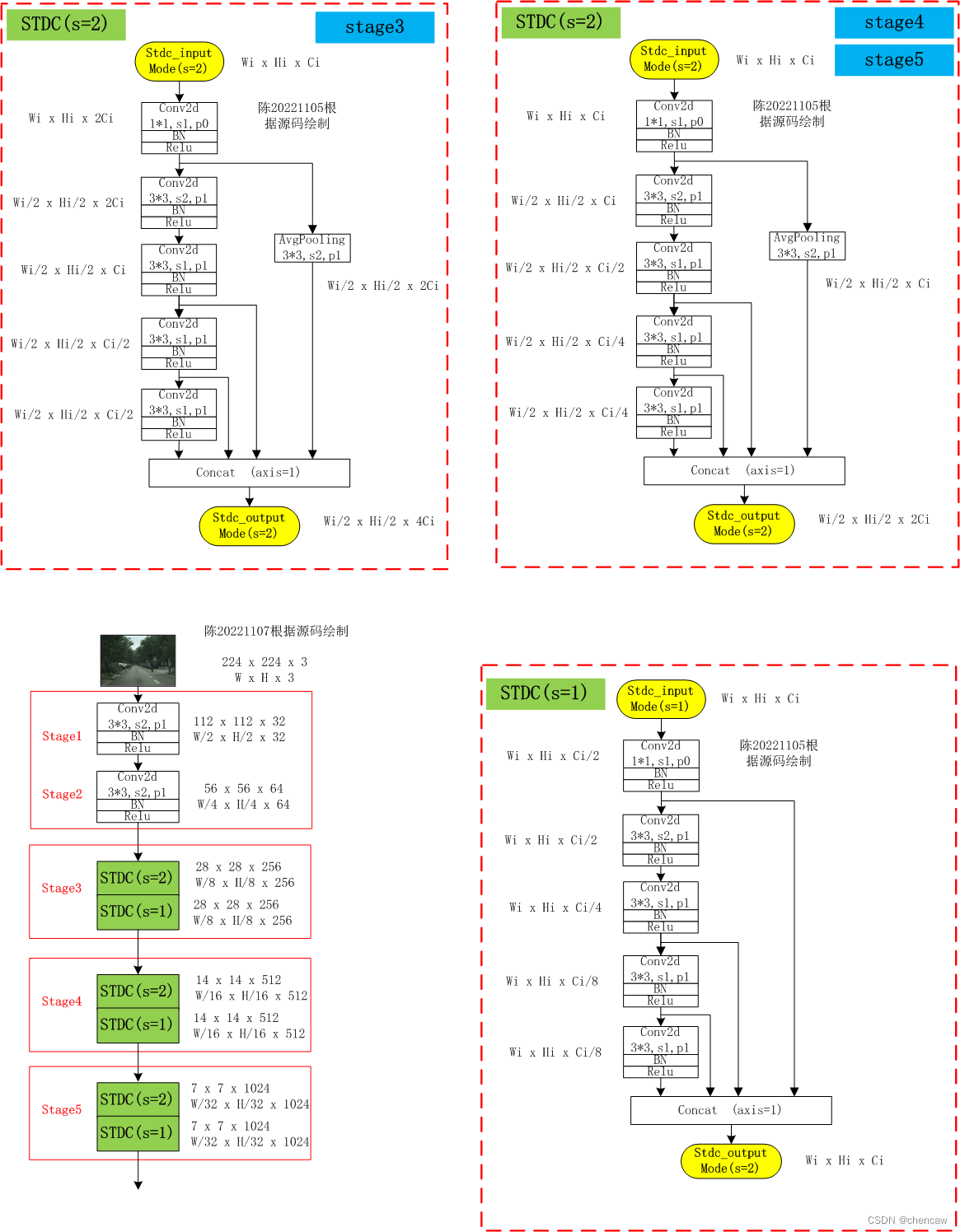 - 为了解决这些问题,我们提出了一种新的、有效的结构,即短期密集级联网络(Short-Term Dense Concatenate networkSTDC network),它消除了结构冗余。