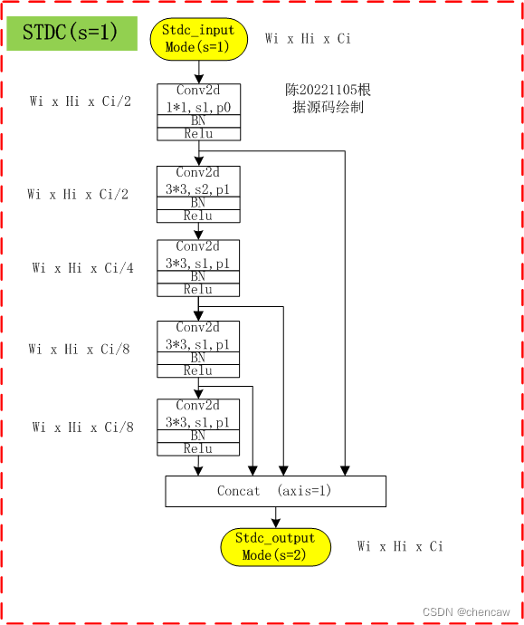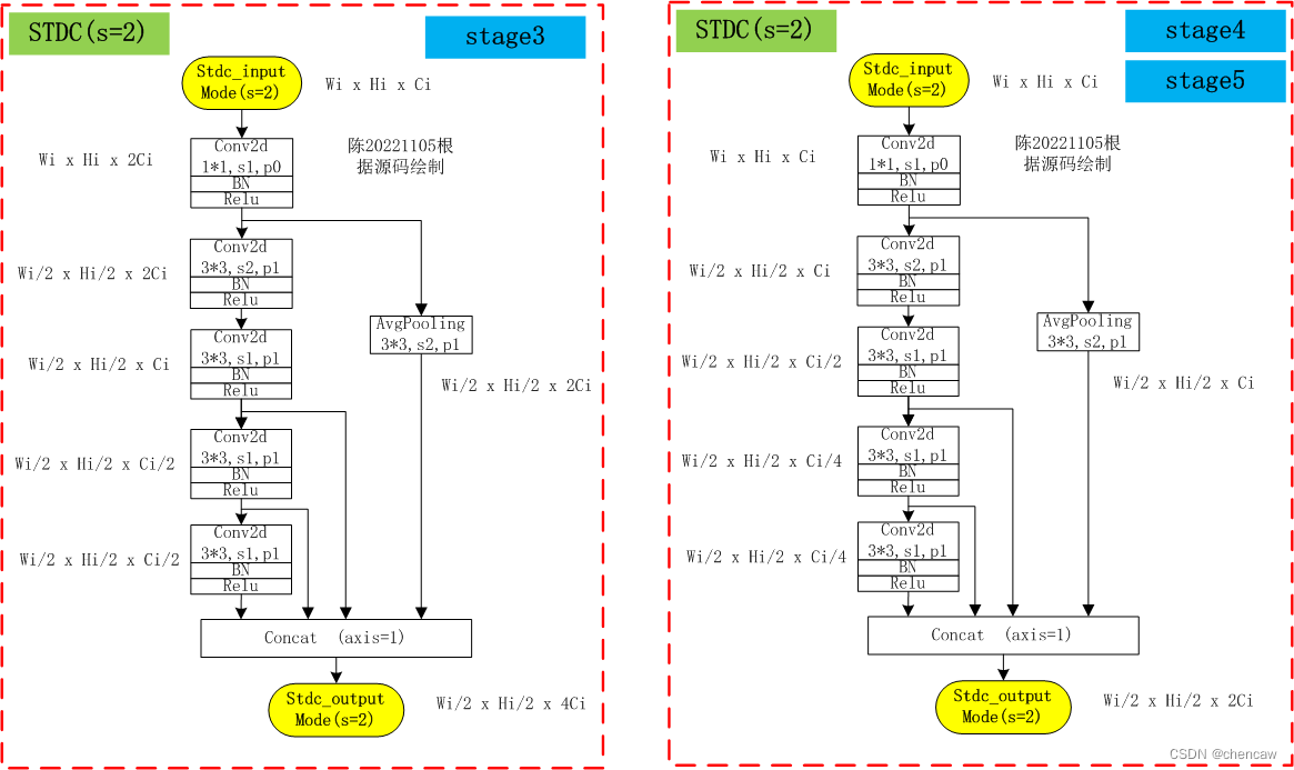 (2)本文提出的STDC结构,没有stride=2的(下采样的)如图b所示