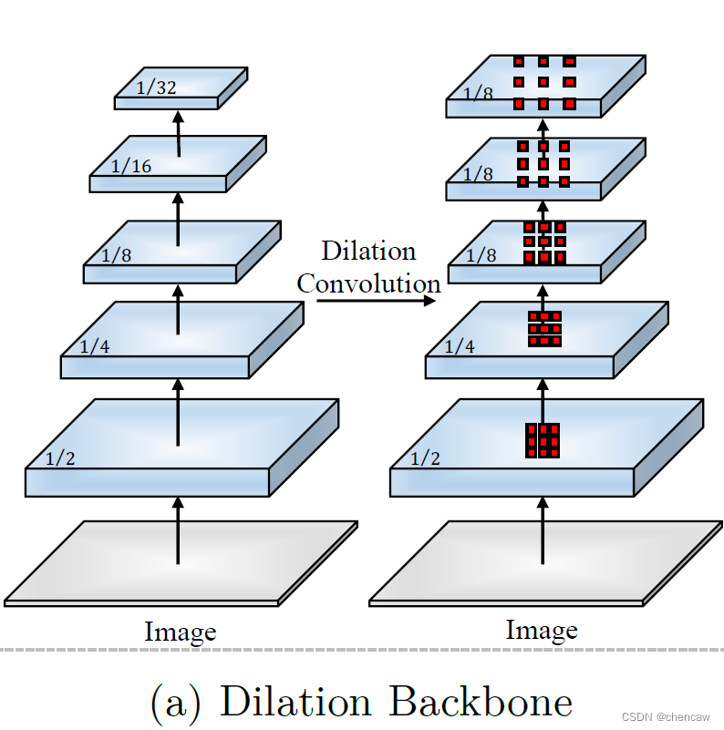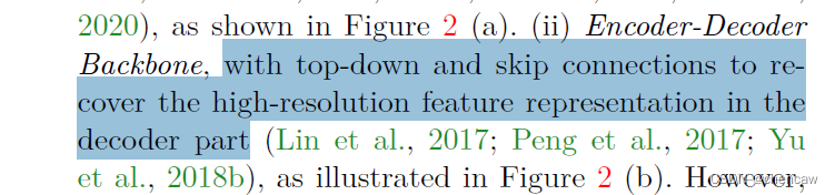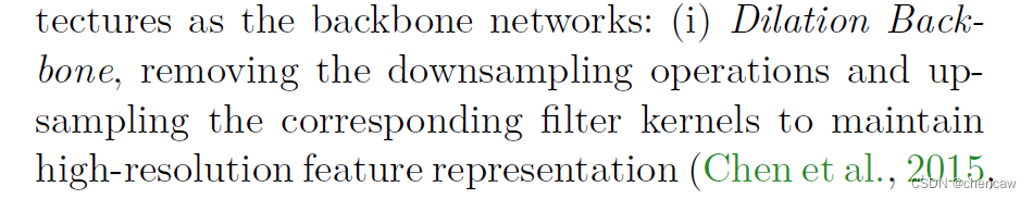 (1)当前研究中为了保持输入图像分辨率的方法一些研究采用了空洞卷积(dilated convolution),另外一些研究为了获得足够的感受野使用了金字塔池模块(pyramid pooling module),ASPP(atrous spatial pyramid pooling)或者大的卷积核(large kernel)。(PS应该对应deeplab的v1、v2和v3版本)。