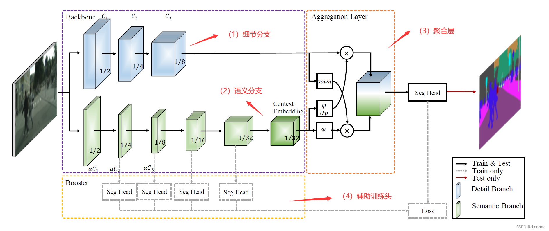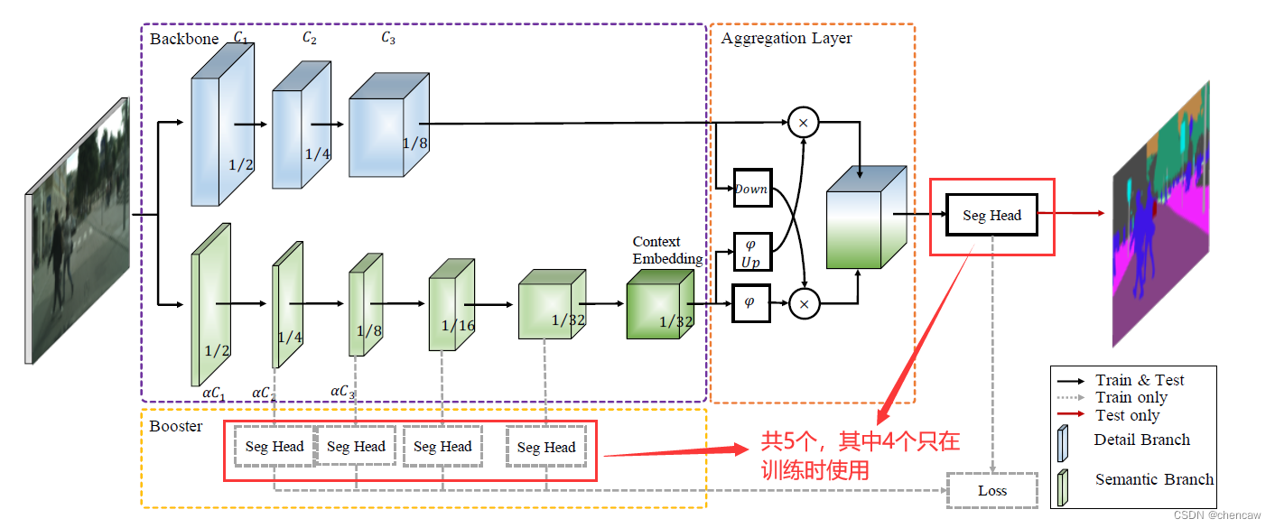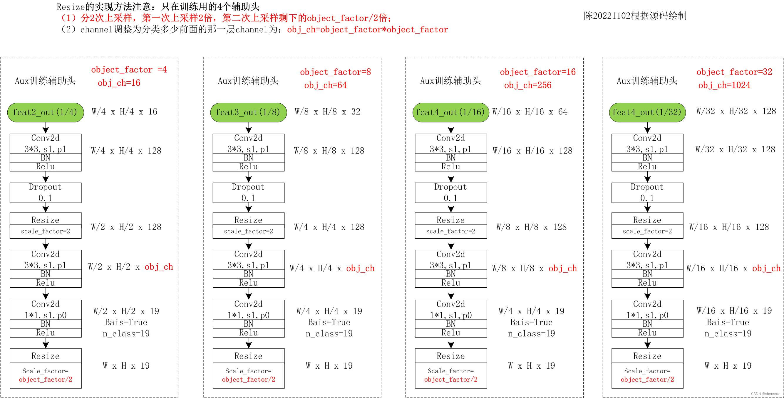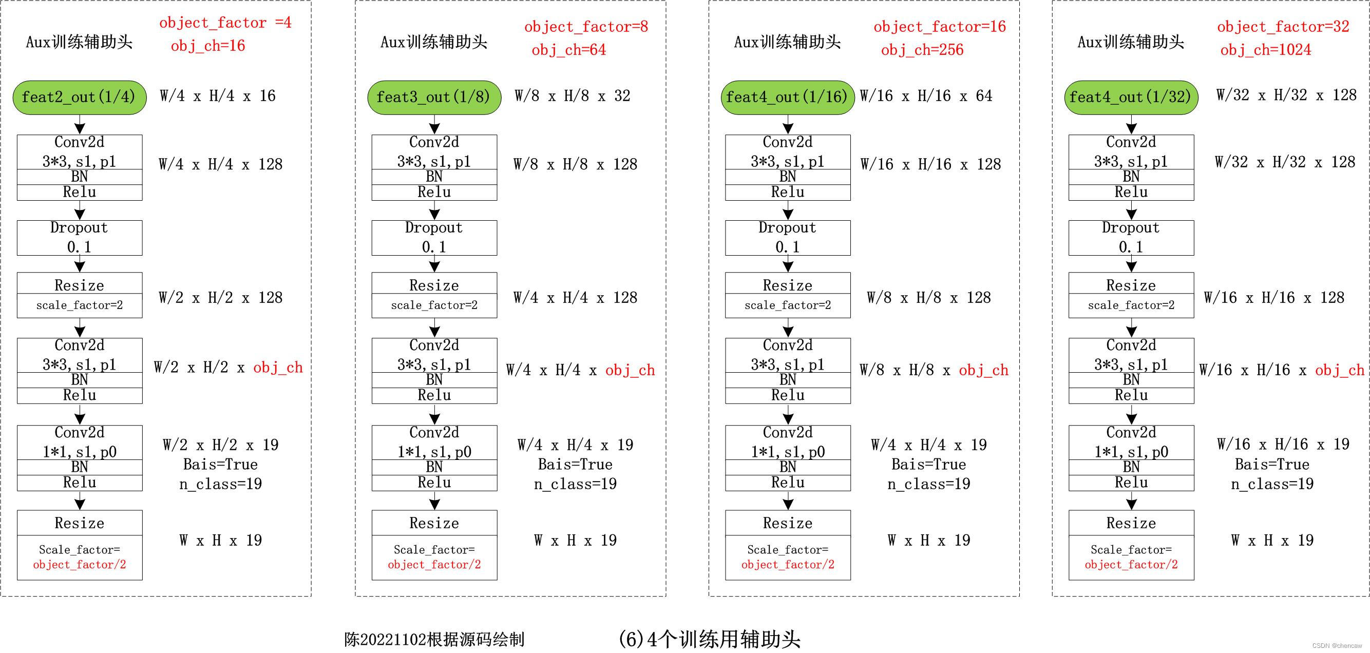 5.8.5 语义分支segment branch中连接的4个训练用辅助头