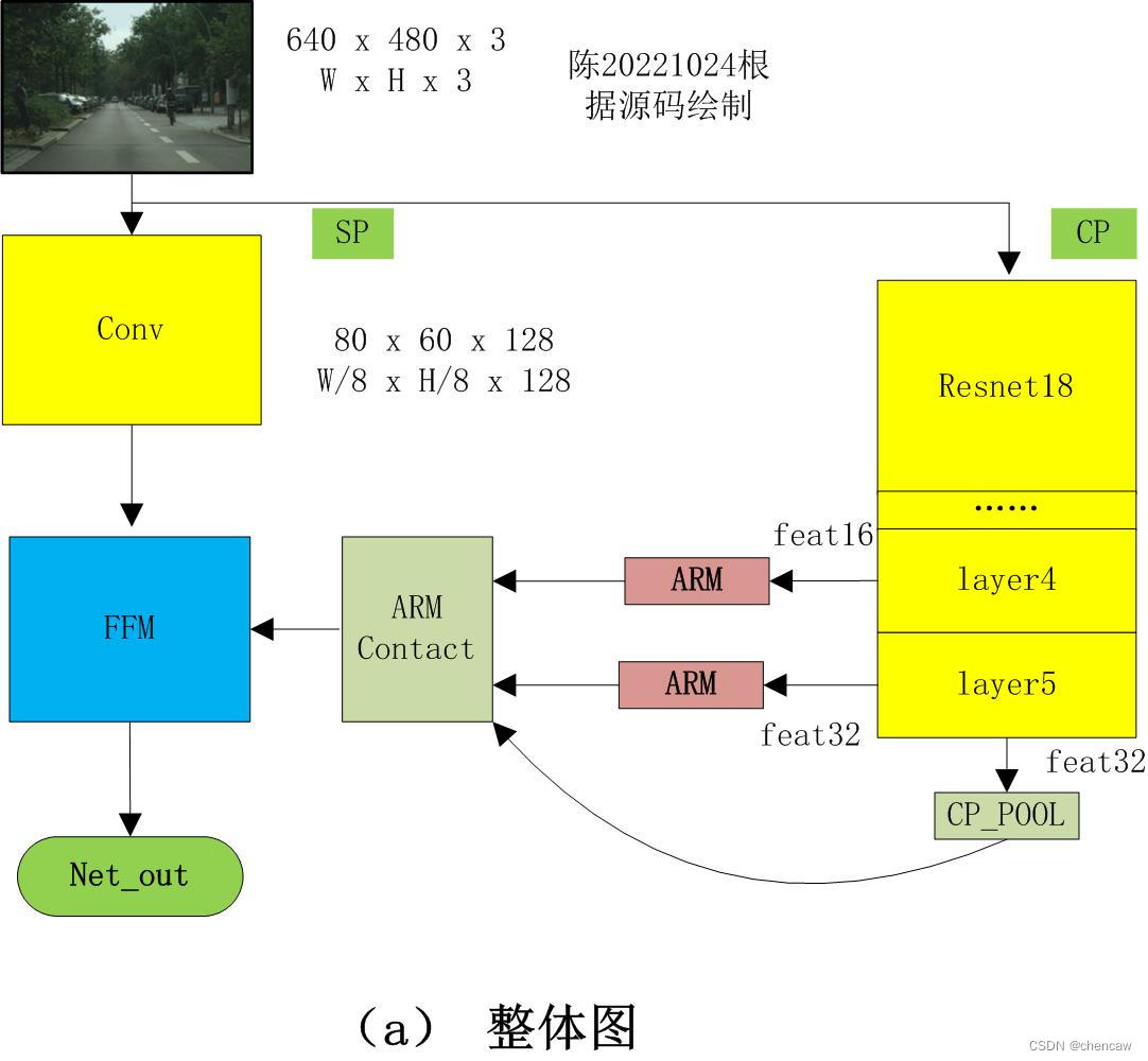 (1)提出了一种创新的方法,使用2个通道(空间通道Spatial Path,语义通道Context Path)来解耦空间信息和大的感受野。