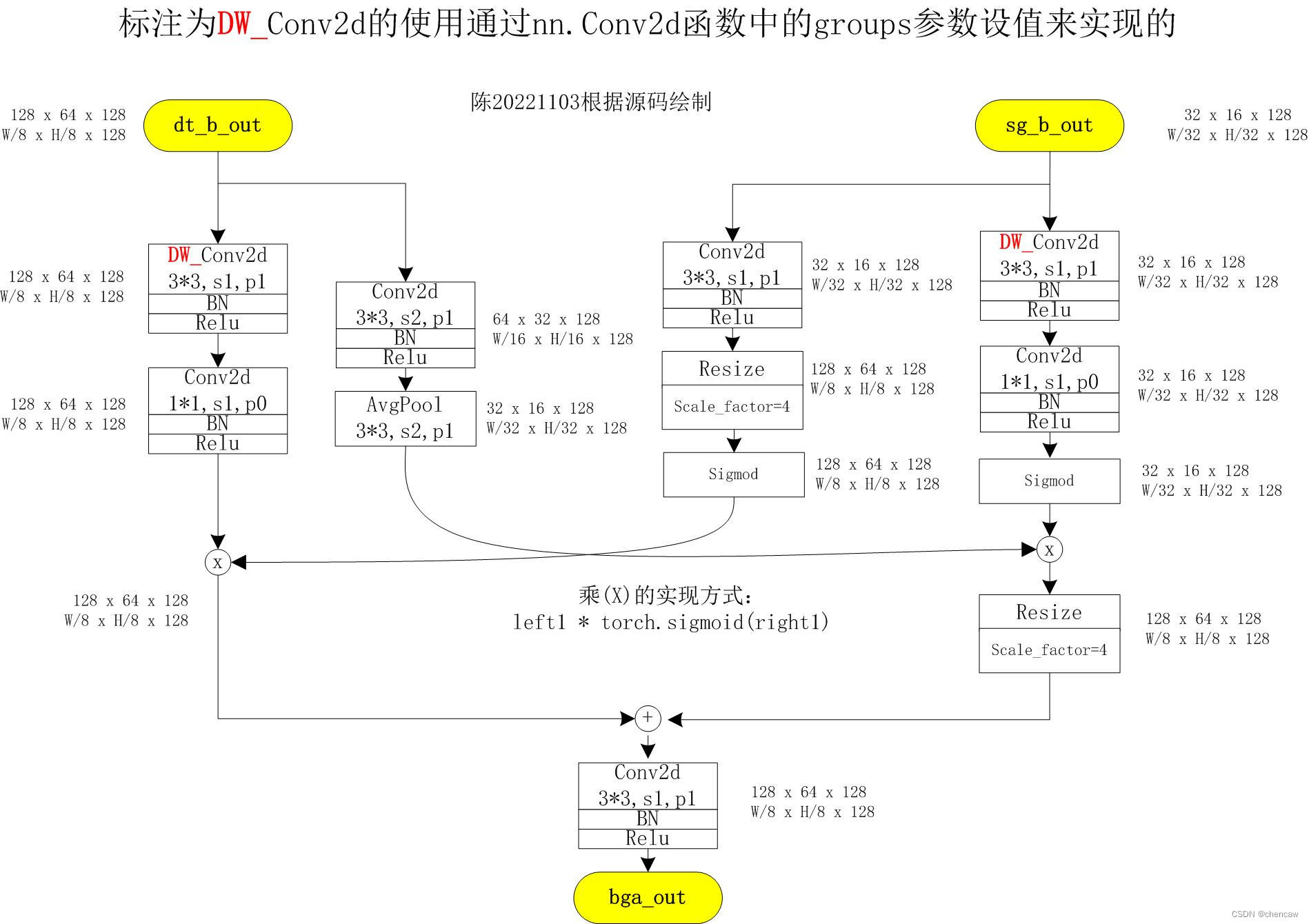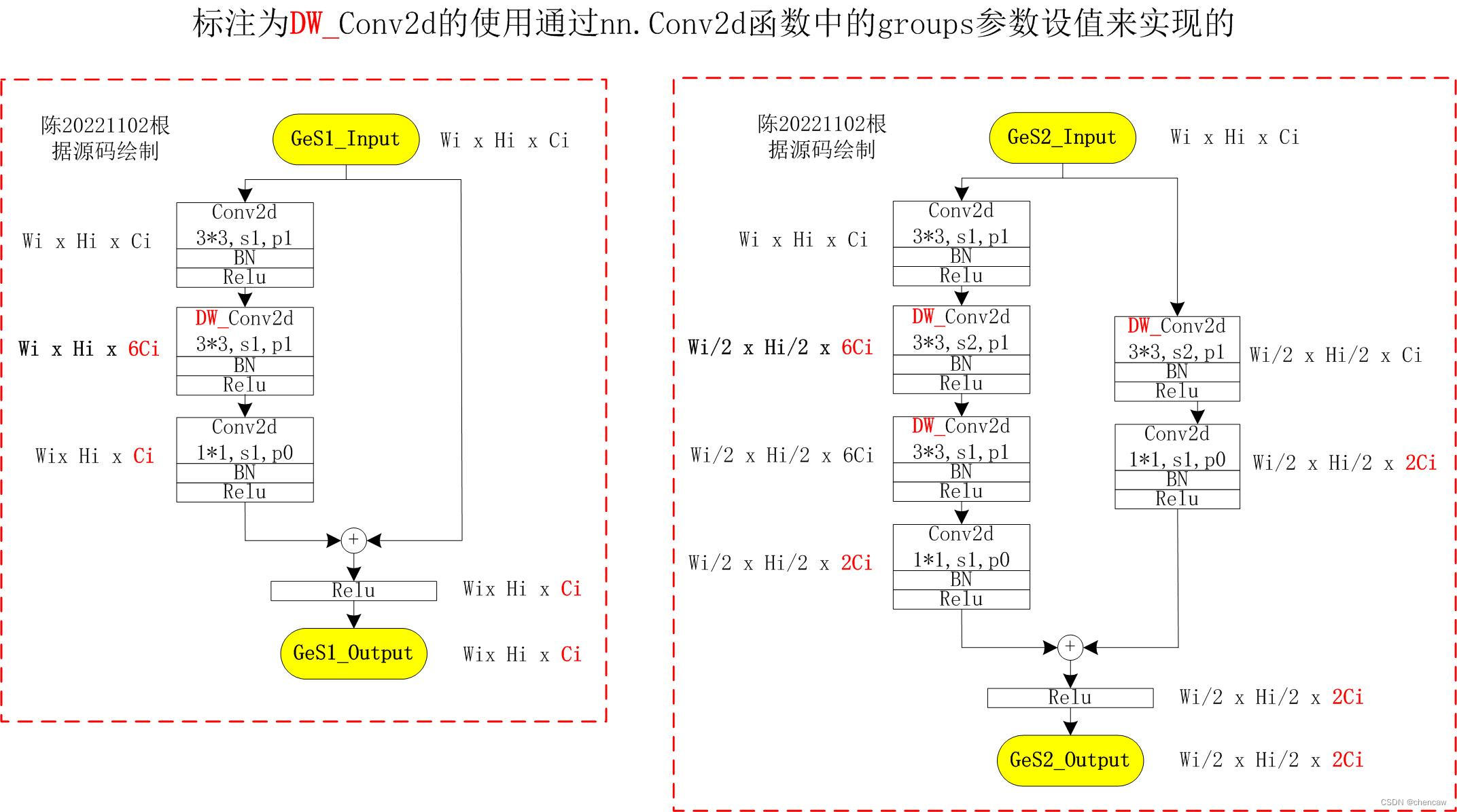 标注为DW_Conv2d的使用通过nn.Conv2d函数中的groups参数设值来实现的