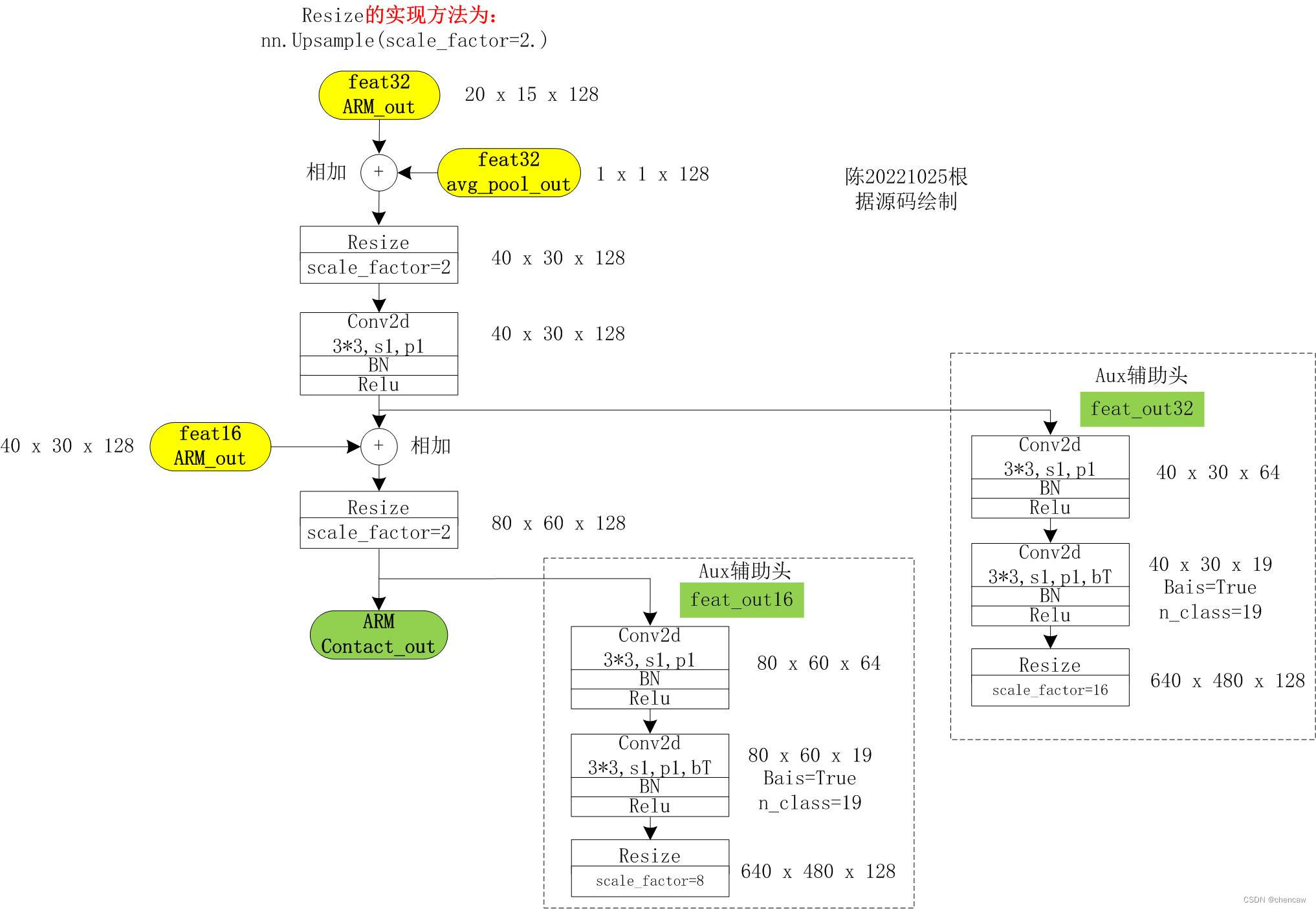 注意:这里相比于论文中的原图,右边的分支多了1次上采样4倍,然后再先加