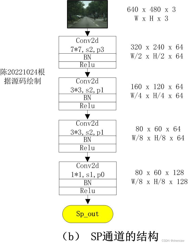该论文提出的空间通道包括三个卷积层,每个卷积层的stride=2,然后跟着BN和Relu,因而该通道实现了原图的1/8采样,因而获得了丰富的空间信息(PS:1/8下采样应该还算是大的)