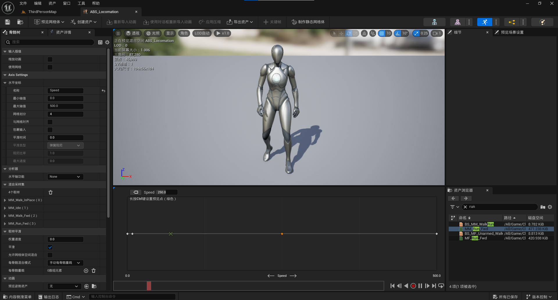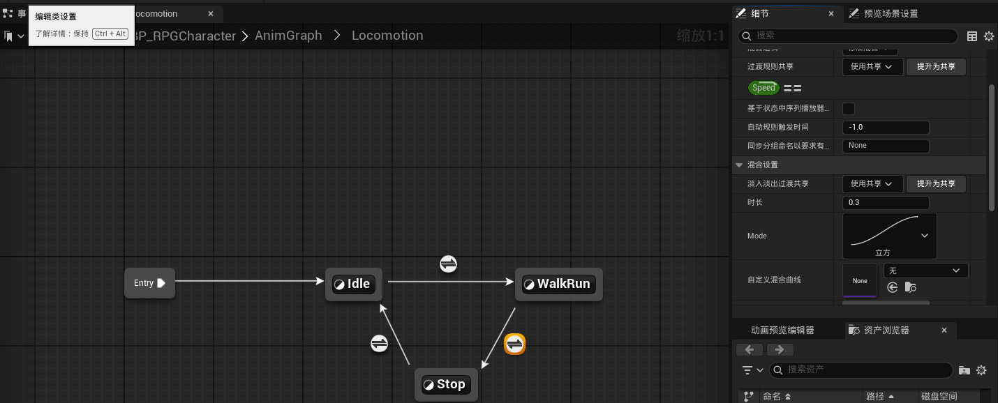 速度轴添加的动画资产: