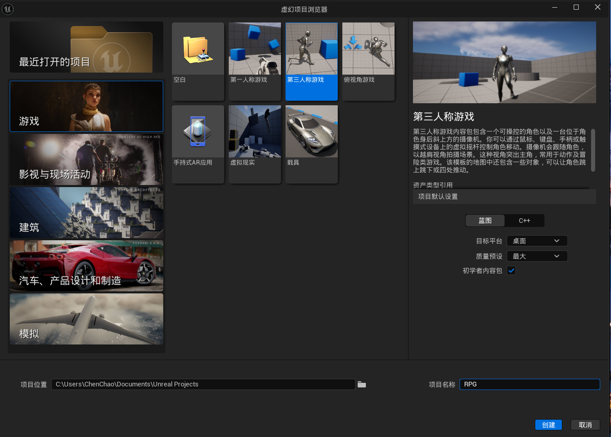 创建蓝图工程: