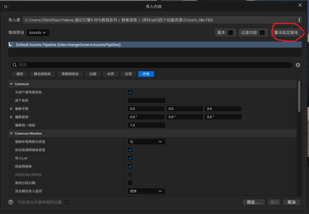 导入动画资源: