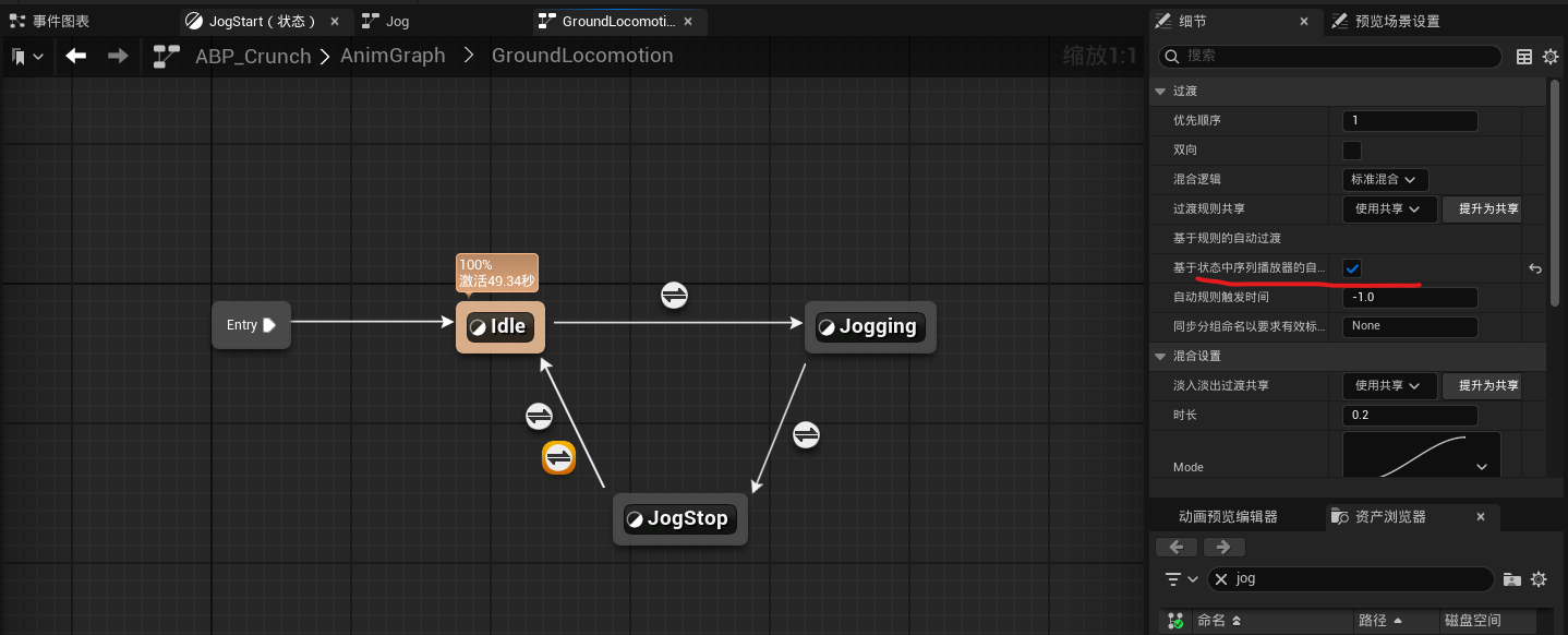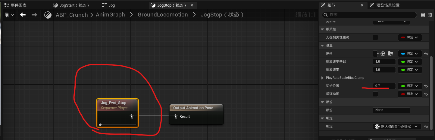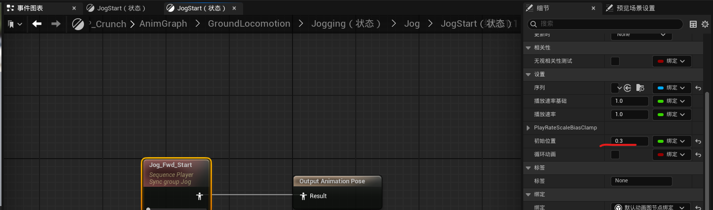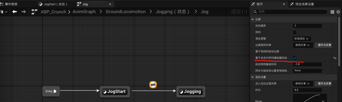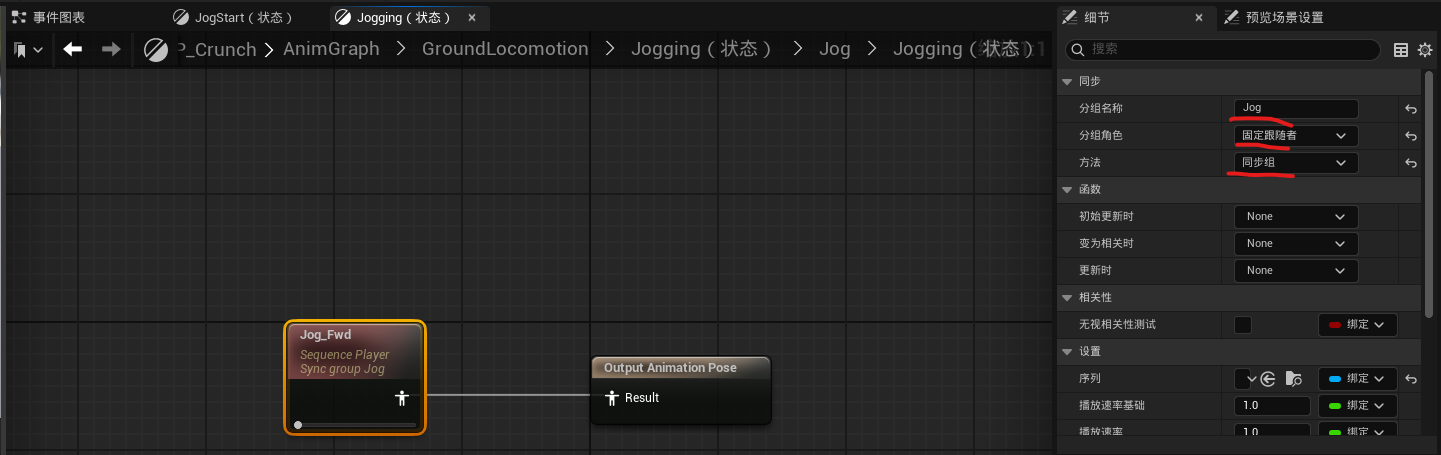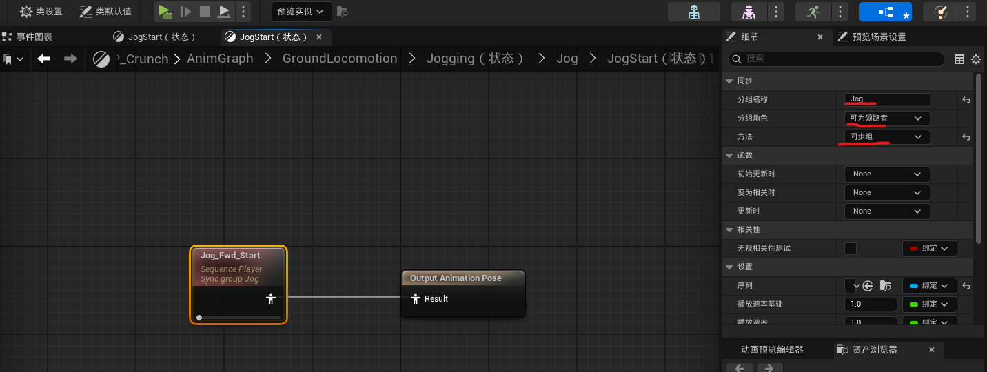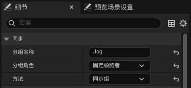 为了使慢跑开始动画和慢跑的动画腿部相匹配,添加动画同步组: