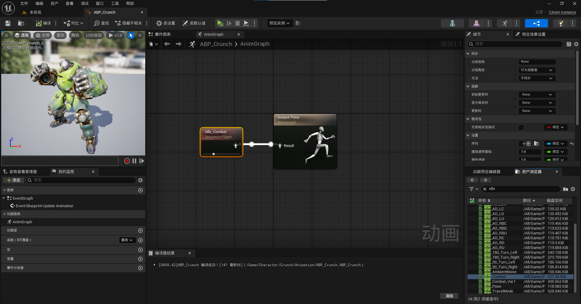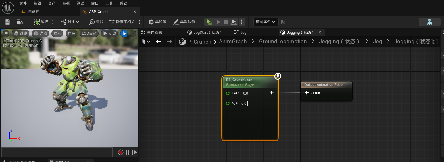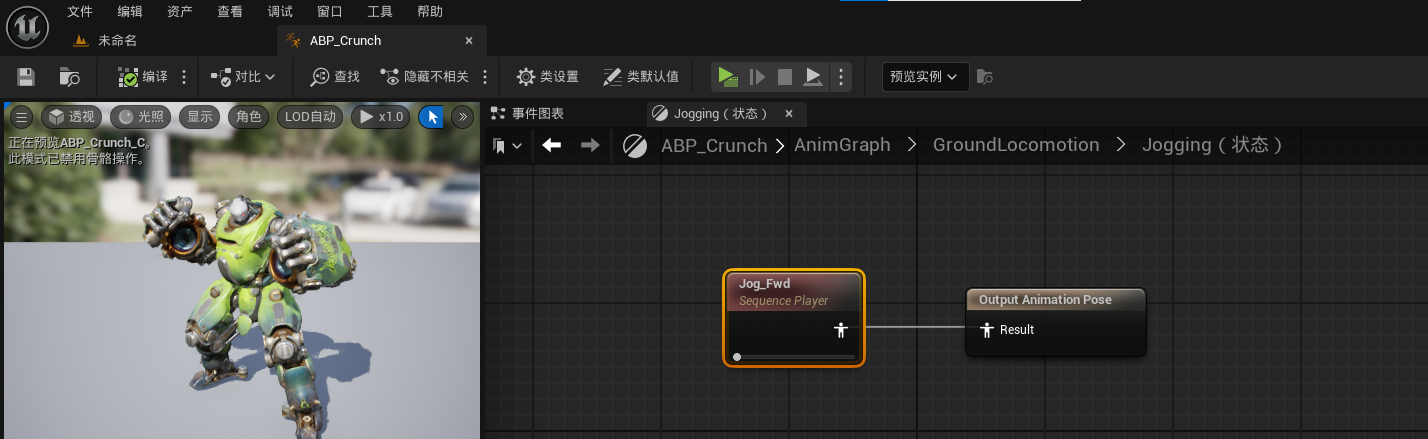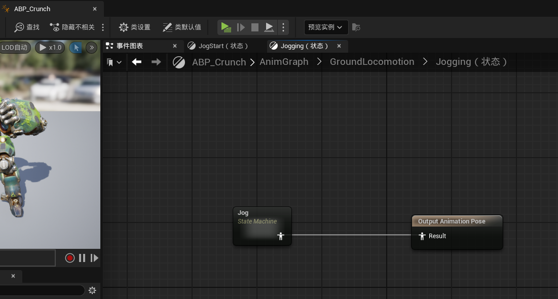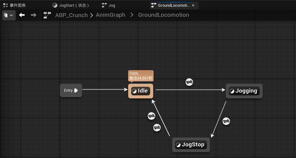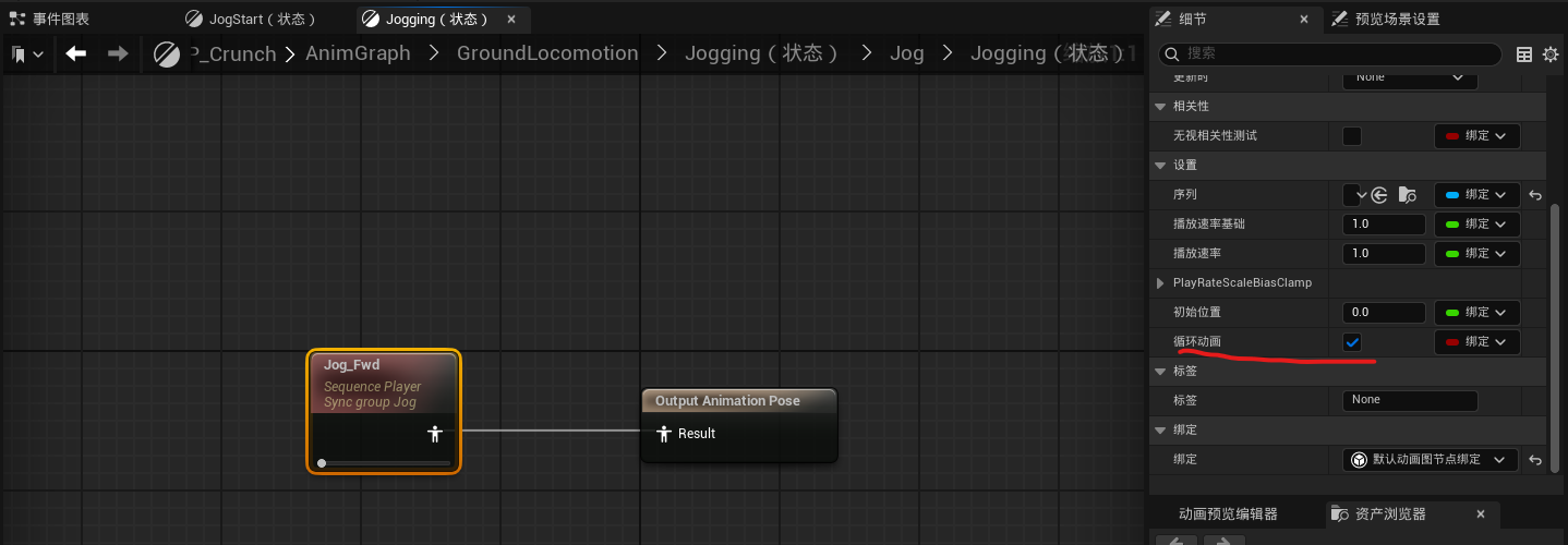 为了使慢跑开始动画和慢跑的动画腿部相匹配,添加动画同步组: