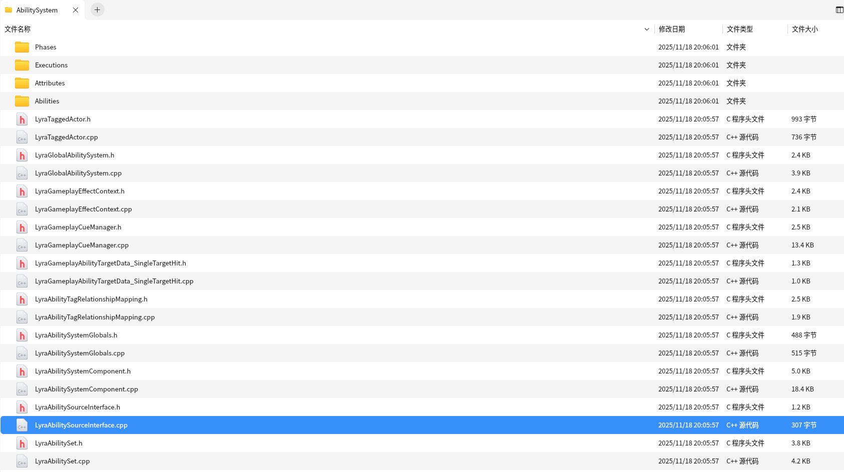 这些文件展示了Lyra游戏能力系统的核心架构: