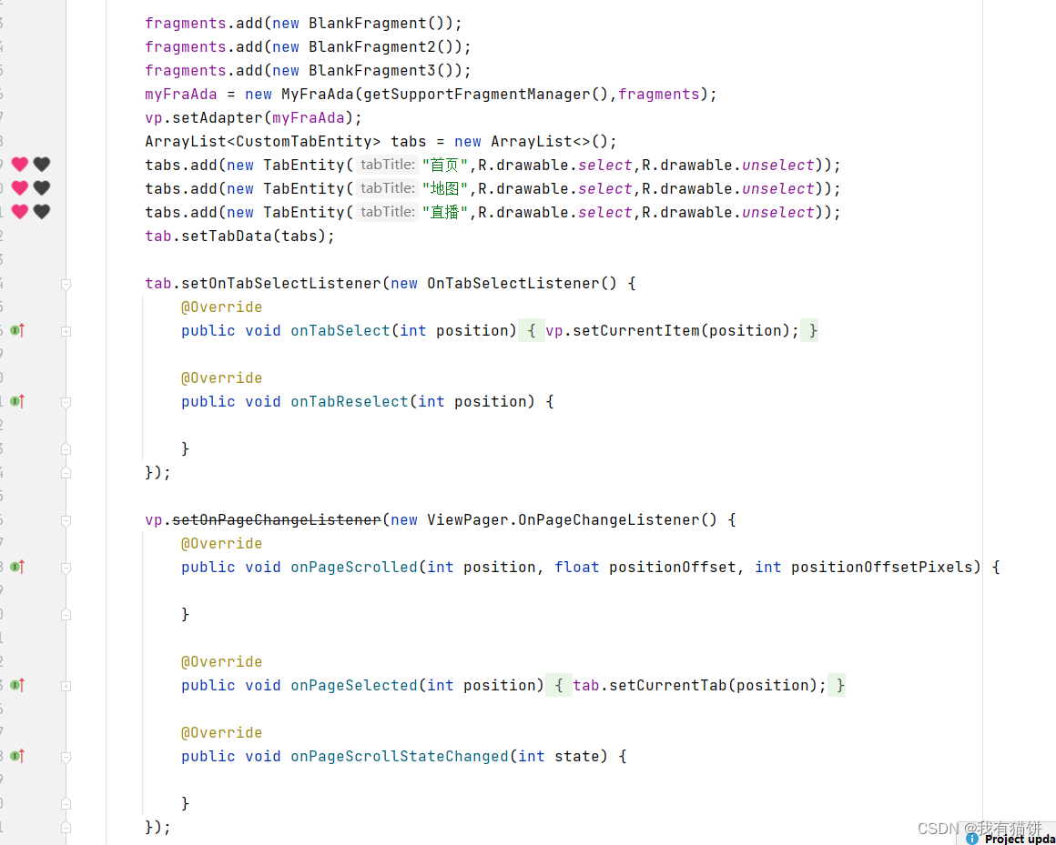 2.头布局根据需求,中间使用ViewPager,底部布局使用CommonTabLayout