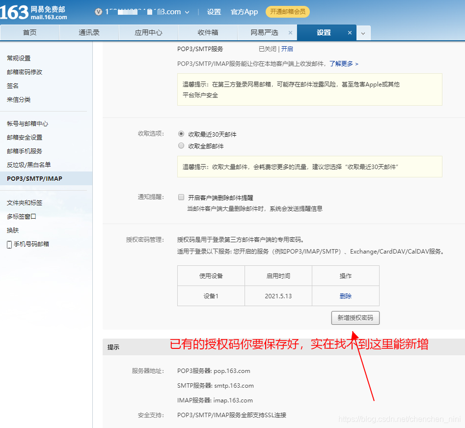 说说 我163邮箱的授权码哪里得来的