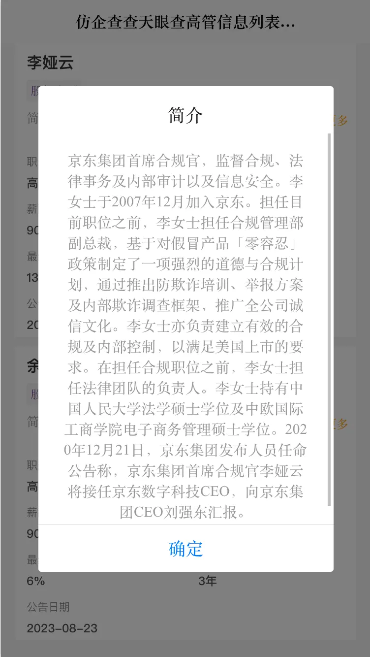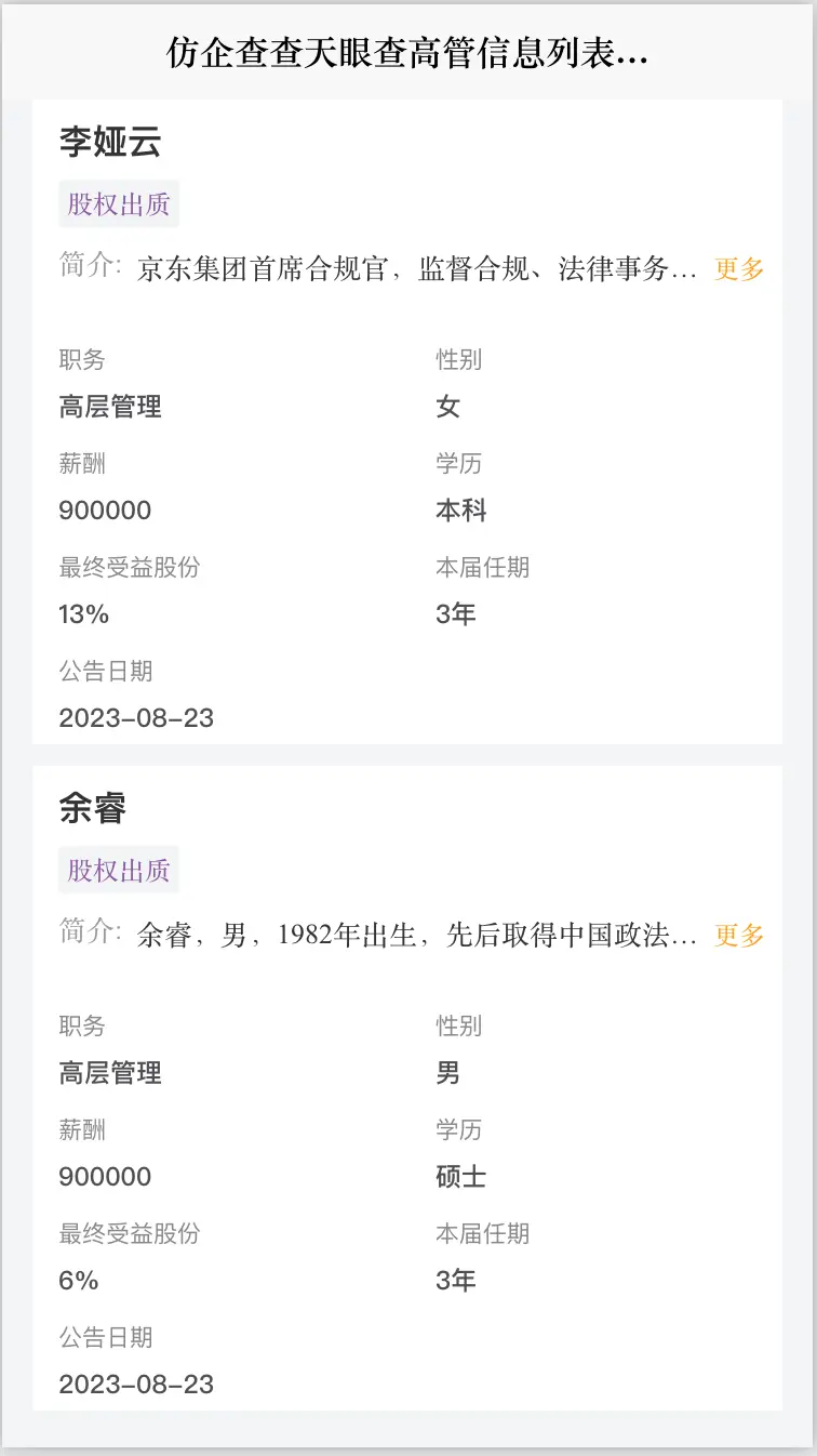 本文将介绍一款组件:前端Vue仿企查查天眼查高管信息列表组件,