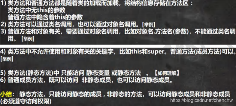 普通的成员方法,既能访问静态变量(方法),也能访问普通变量(方法)。