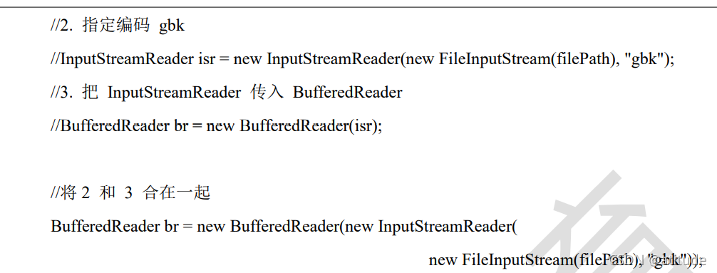 小tips :字节流和字符流,字节流是最底层的流,字符流呢高级一点,但是我们使用的过程中,字符流的效率高一点,所以我们会用到转换流,将字节流转换成字符流,这只是其中的一方面,另外一个方面是,字节流能人为规定编码类型,比如读取的时候能够将其提前规定好编码类型,因此,九江前面的学习内容串联在一起了。像下面一样改进。