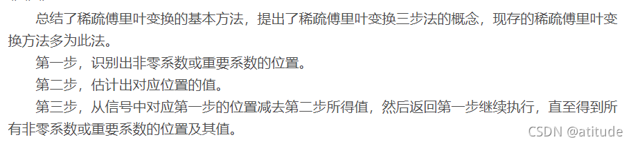 主要利用信号频域稀疏的特性,通过某种查找算法定位出信号频谱中,非零系数(重要系数)的位置及其对应的系数值,实现信号的快速傅里叶变换。