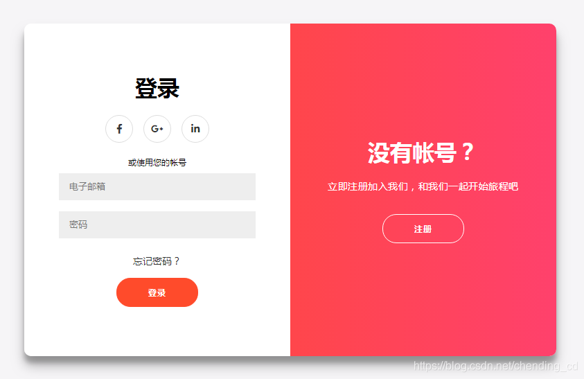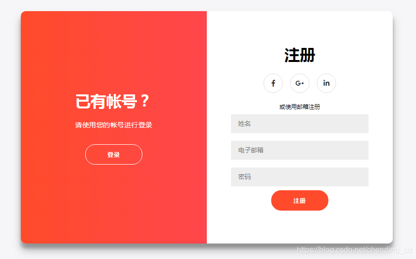 先放出html css js 以及页面效果。这个是随便找了个登录注册的开源页面。