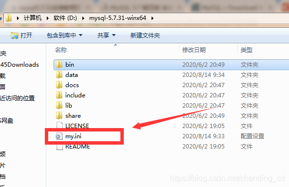 在根目录下新建一个 my.ini的配置文件