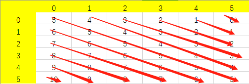 这样,我们就可以把皇后的位置映射成对角线上的皇后个数,从而算出冲突数并放入冲突表中: