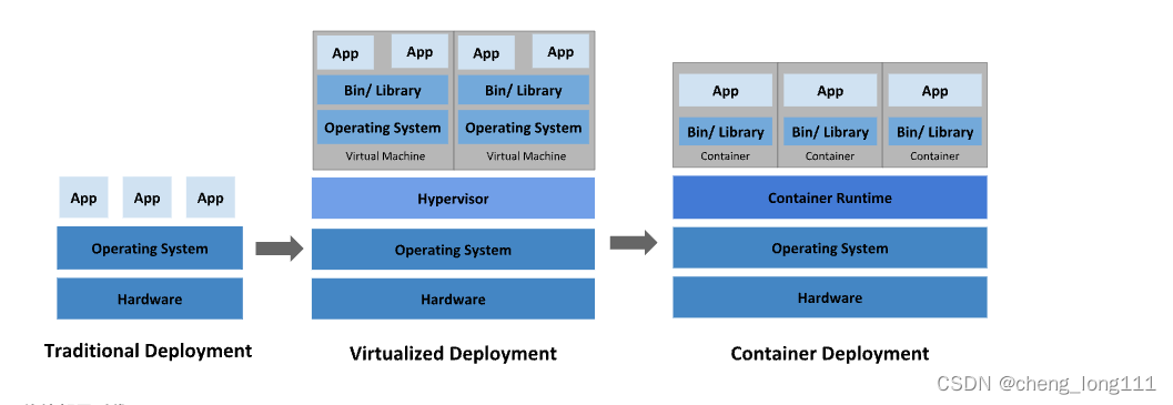 作为解决方案,引入了虚拟化。虚拟化技术允许你在单个物理服务器的 CPU 上运行多个虚拟机(VM)。 虚拟化允许应用程序在 VM 之间隔离,并提供一定程度的安全,因为一个应用程序的信息 不能被另一应用程序随意访问。