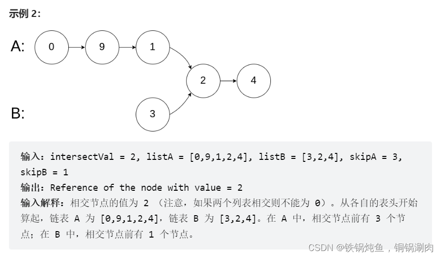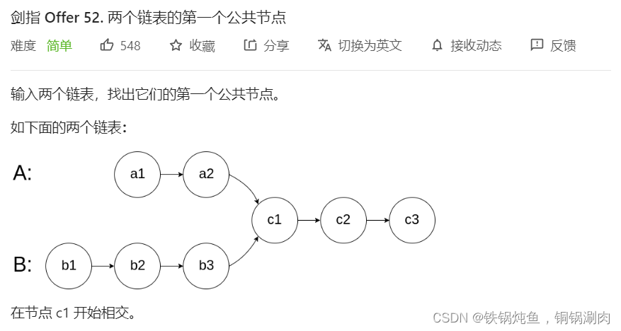 这道题比较简单,依次找链表中的节点比较,第一个相等的节点即为相交的节点。