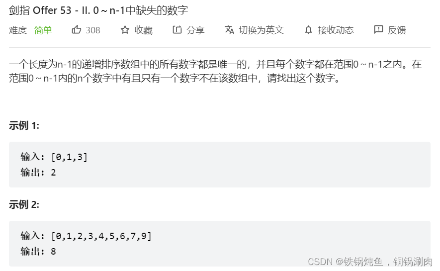 该博客介绍了如何使用排序算法在整数数组中找到缺失的数字。通过将数组排序,然后遍历找到第一个不匹配索引的元素,即可确定缺失值。如果所有元素都等于其索引,则缺失的数字是数组长度。