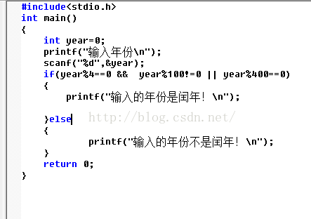 举个例子:200年:200/4=50 不是闰年,但是400(400/4=100)是闰年。这怎么办?怎么让200不是闰年而400是闰年呢?于是我们想到一个表达式:设n为年份,(n/4=整数并且(&&)n/100不等于整数)或者(||)n/400是整数。这样让200不是闰年,而400确实整数。比如n=1996;n/4=499(整数)并且1996/100=19.96(不是整数)这样1996就是闰年。加入n=2000呢?2000/4=500,2000/100=20。于是2000不是闰年,但是2000/400=5;于是假和真的或者(||)是真,于是2000是闰年。当然在程序中我们就得把/换为%(取余)。(如果还是没看明白请百度链接为:http://baike.so.com/doc/5366944-5602688.html)