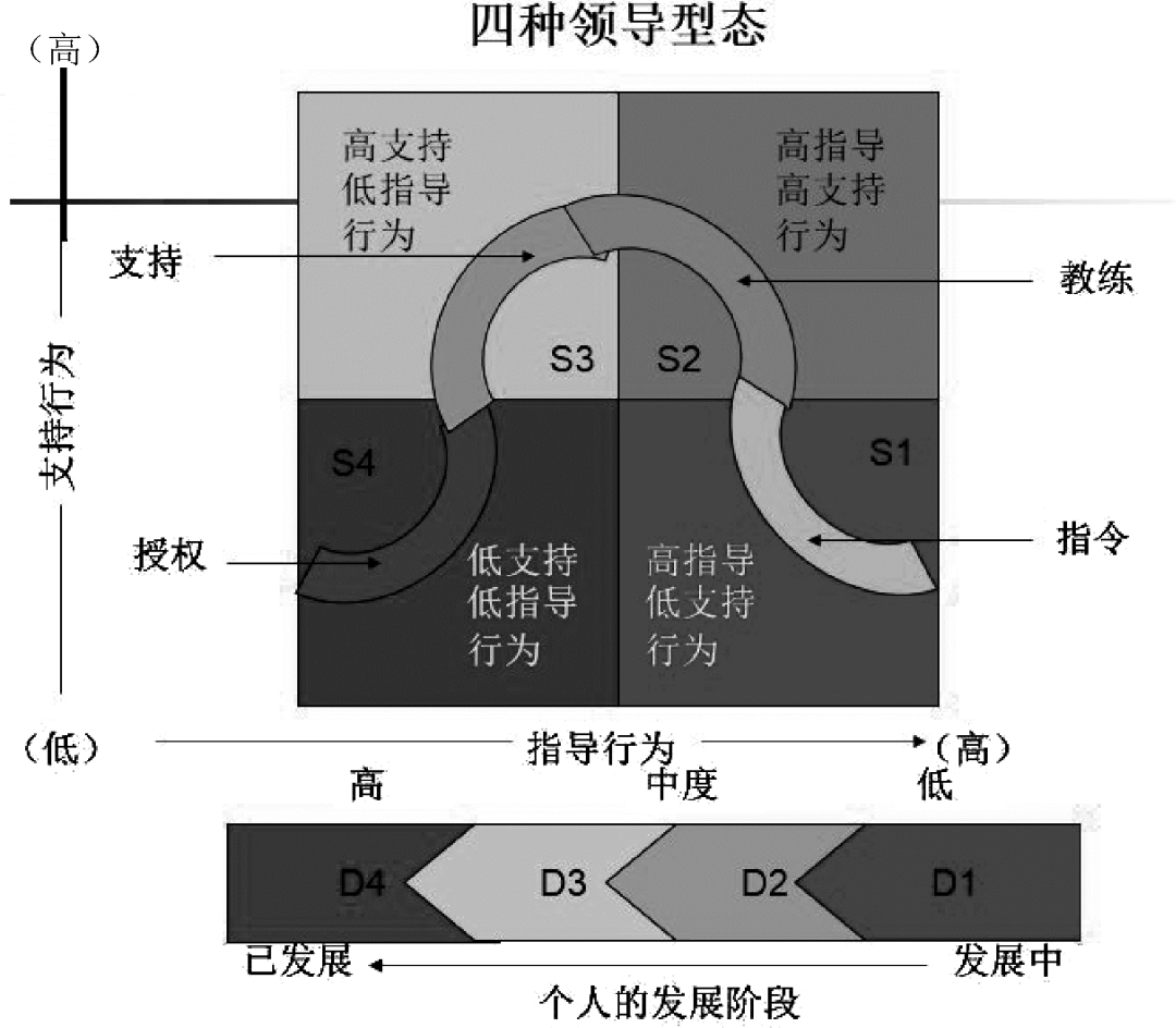 该理论认为,领导者要根据被领导者的能力和意愿度,采取相适应的领导方法,才能取得有效的领导效果。情境领导是一种领导模式,它的目的是帮助下属发展自我,使其能针对特定的目标或任务,经过时间的积累,达到最佳的工作成效。相关资料很多,我们就不展开了。