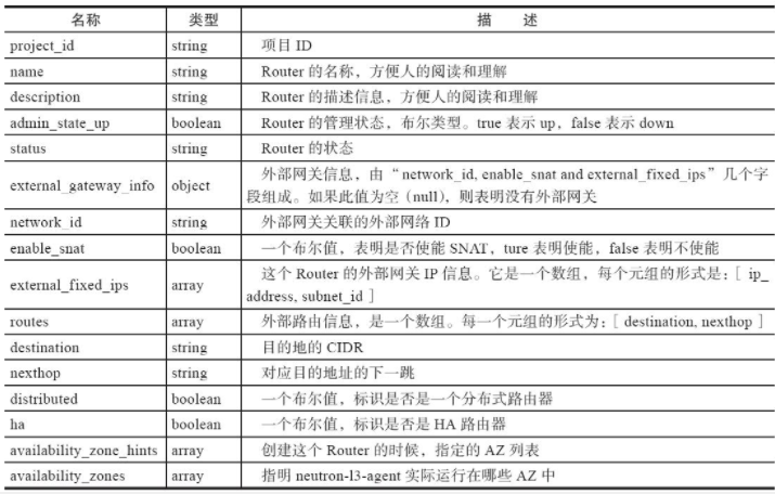 虽然从功能上来说,Router只要有了路由表以及对应端口就可以进行路由转发。但对于外部网络(Neutron管理范围之外的网络)路由转发,尤其是公网,Router还是用了一个特殊的字段来表示:external_gateway_info(外部网关信息)。