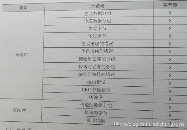 (3)计数器,流表项中的计数器用来统计相关“流”的一些信息,例如查找次数、收发组数、生存时间等。另外,openflow针对每张表、每个流表项、每个端口、每个队列也都会维护他们相应的计数器,具体信息如下: