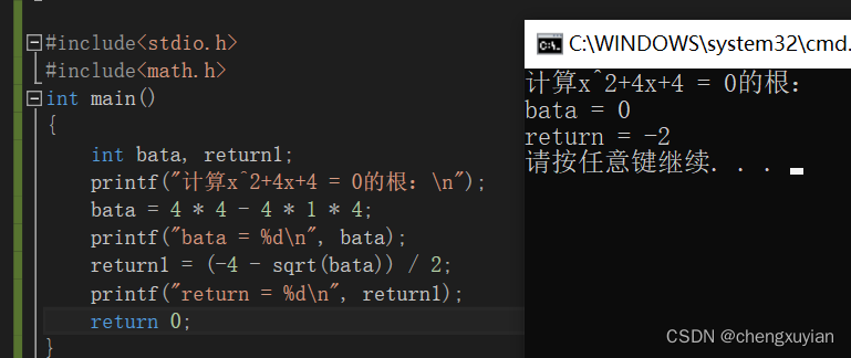 接下来举个例子:ax^2+bx+c = 0;这个最简单的二元一次函数,相信上过高中的同学都见过,接下来我来写一个代码求解一下x^2+4x+4 =0;这个二元一次方程。