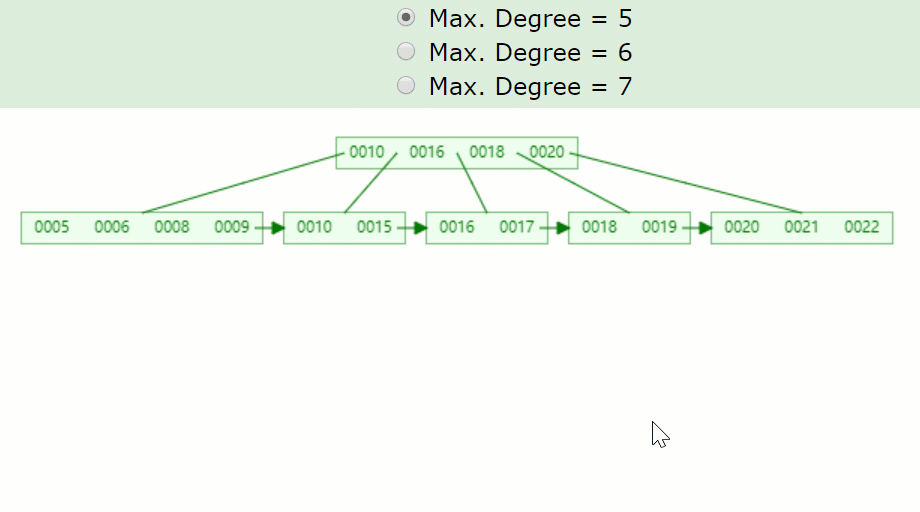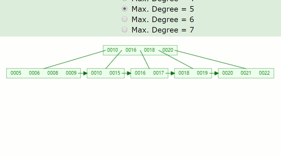 以下这颗5阶的B+树为例: