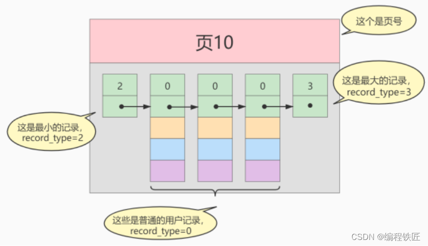 record_type:表示记录的类型, 0是普通记录、 2是最小记录、 3 是最大记录、1是B+树非叶子节点记录。 -