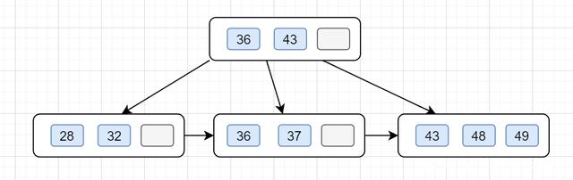 以一颗4阶的B+树为例子吧,4阶的话,关键值最多3(m-1)个。假设插入以下数据43,48,36,32,37,49,28。