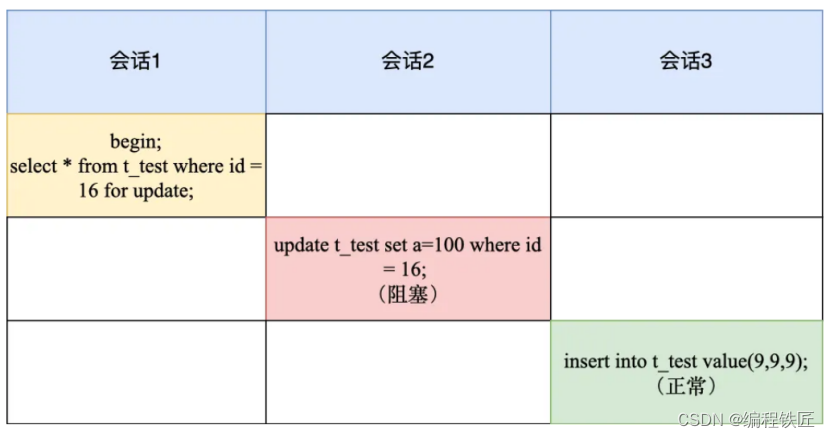 Ⅲ、会话 2 在修改 id=16 的记录时会被锁住,而会话 3 插入 id=9 的记录可以被正常执行。