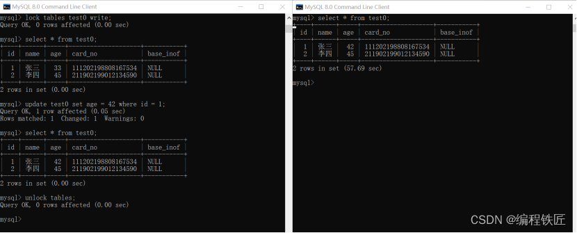 Ⅰ、启动会话A,并加表写锁 lock tables test0 write;