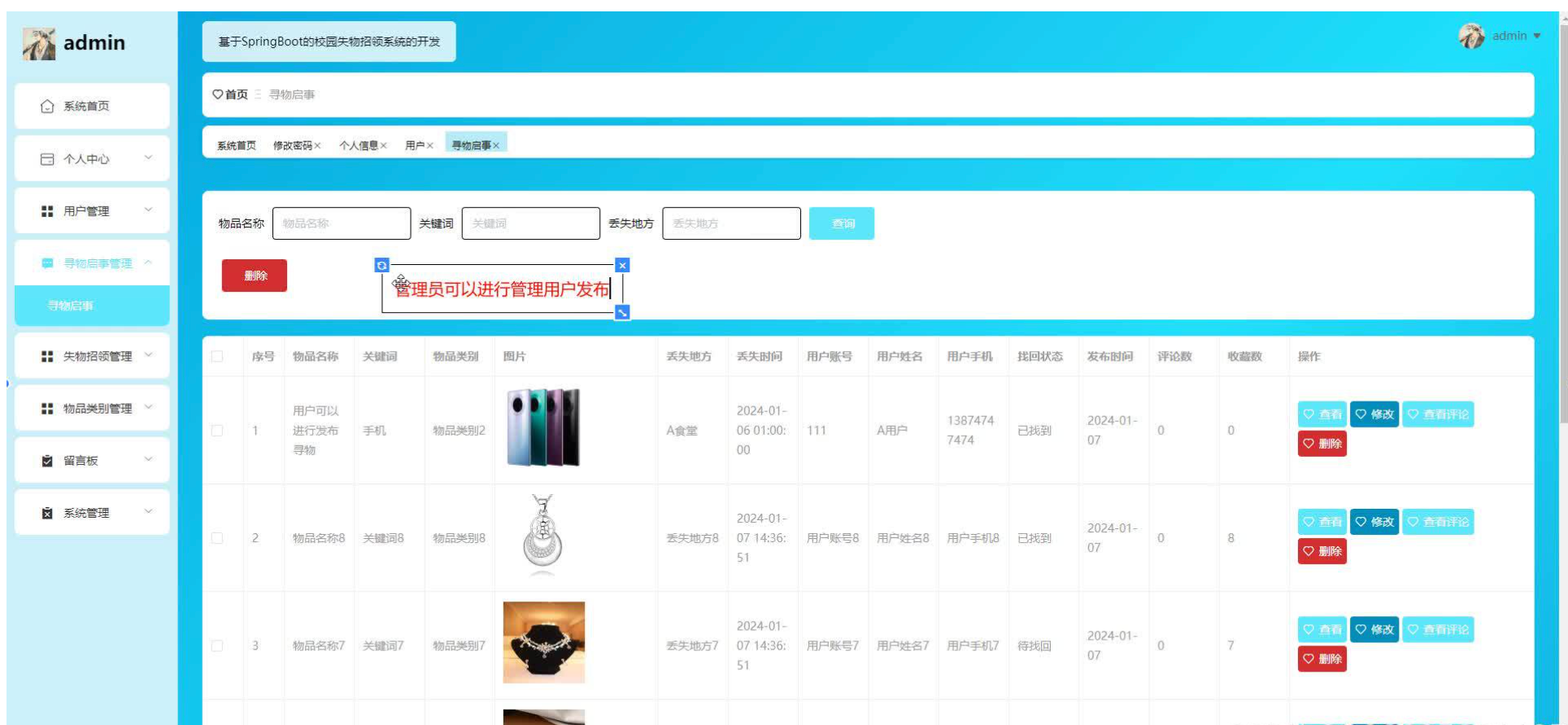 基于springboot的校园失物招领系统的设计与实现(代码+LW文档+远程运行)