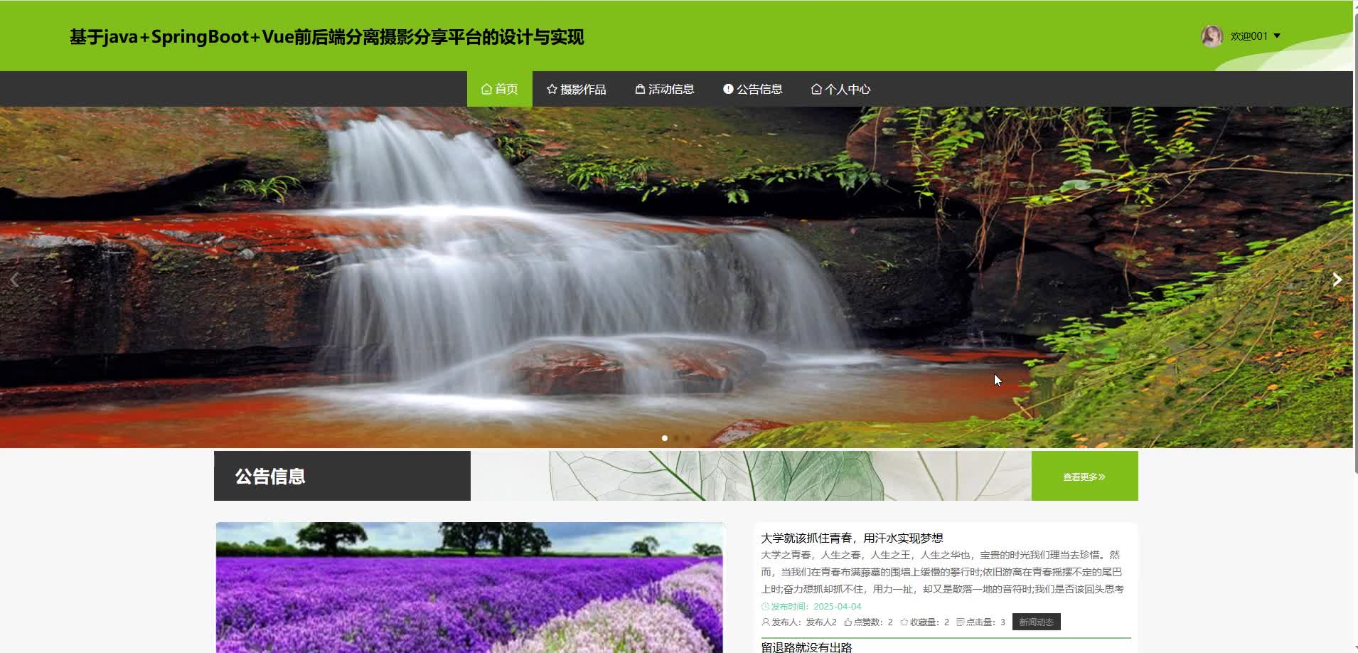 基于SpringBoot+Vue的摄影分享平台的设计与实现(源码+lw+部署文档+讲解等)
