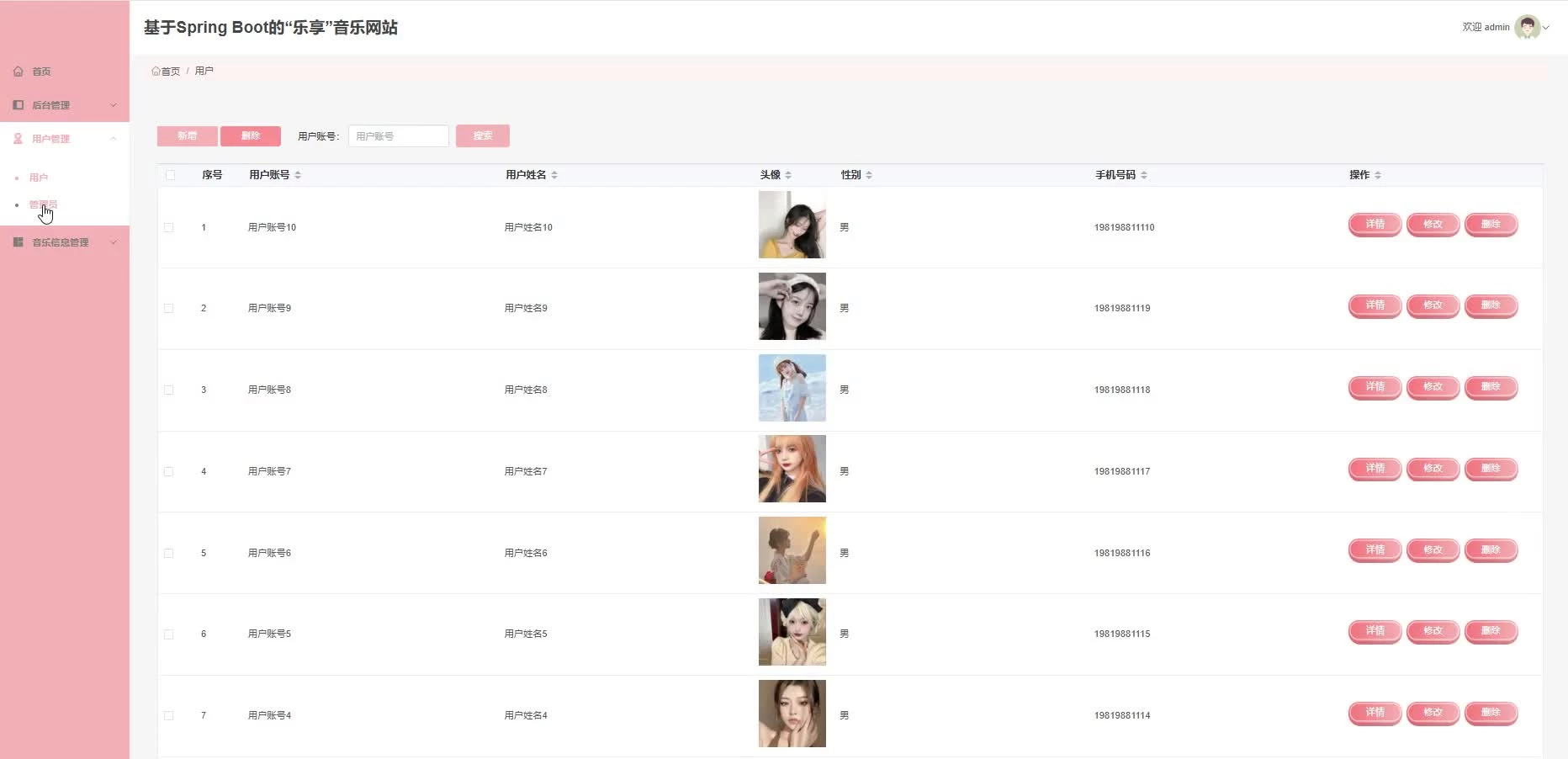 * 后台列表
