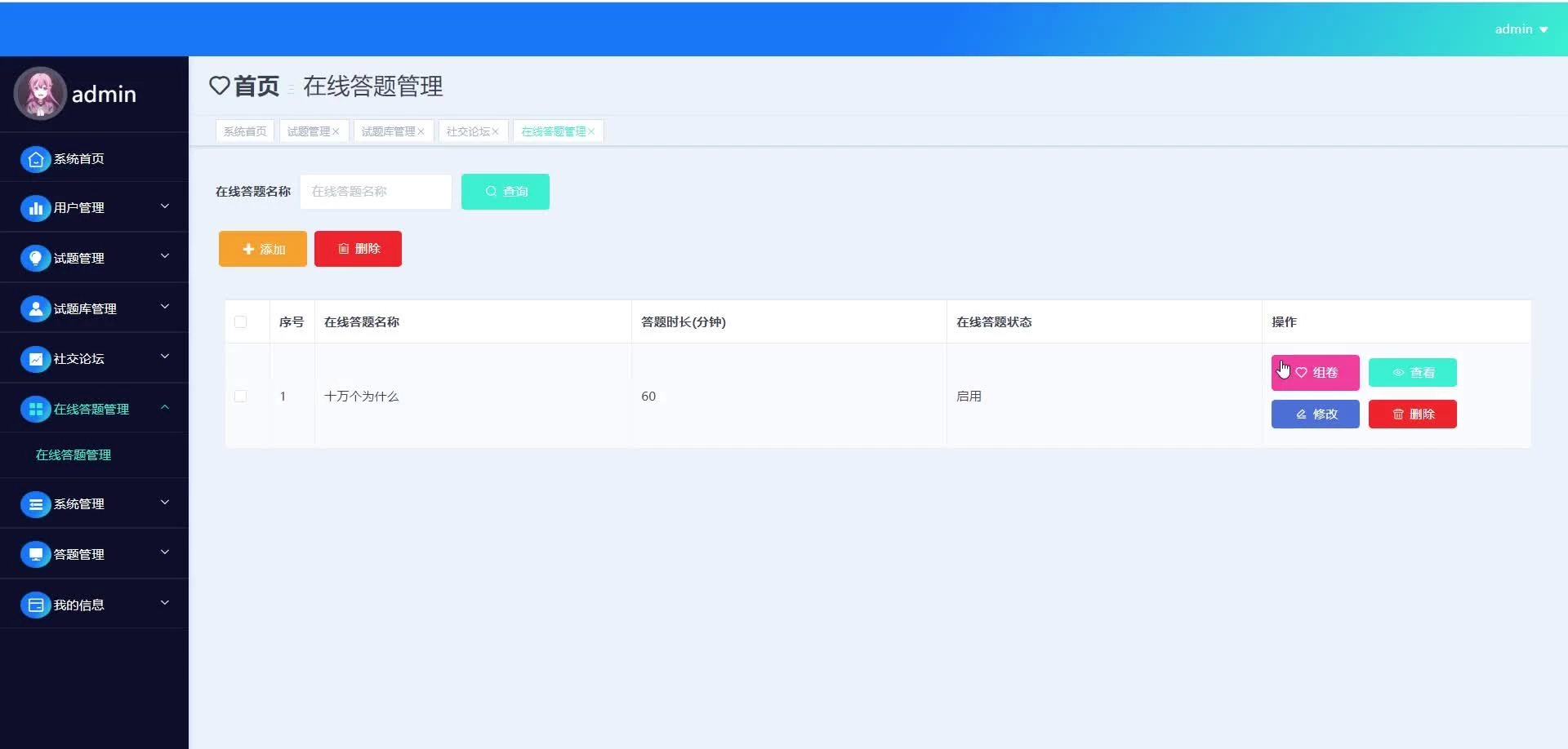 * 后台列表