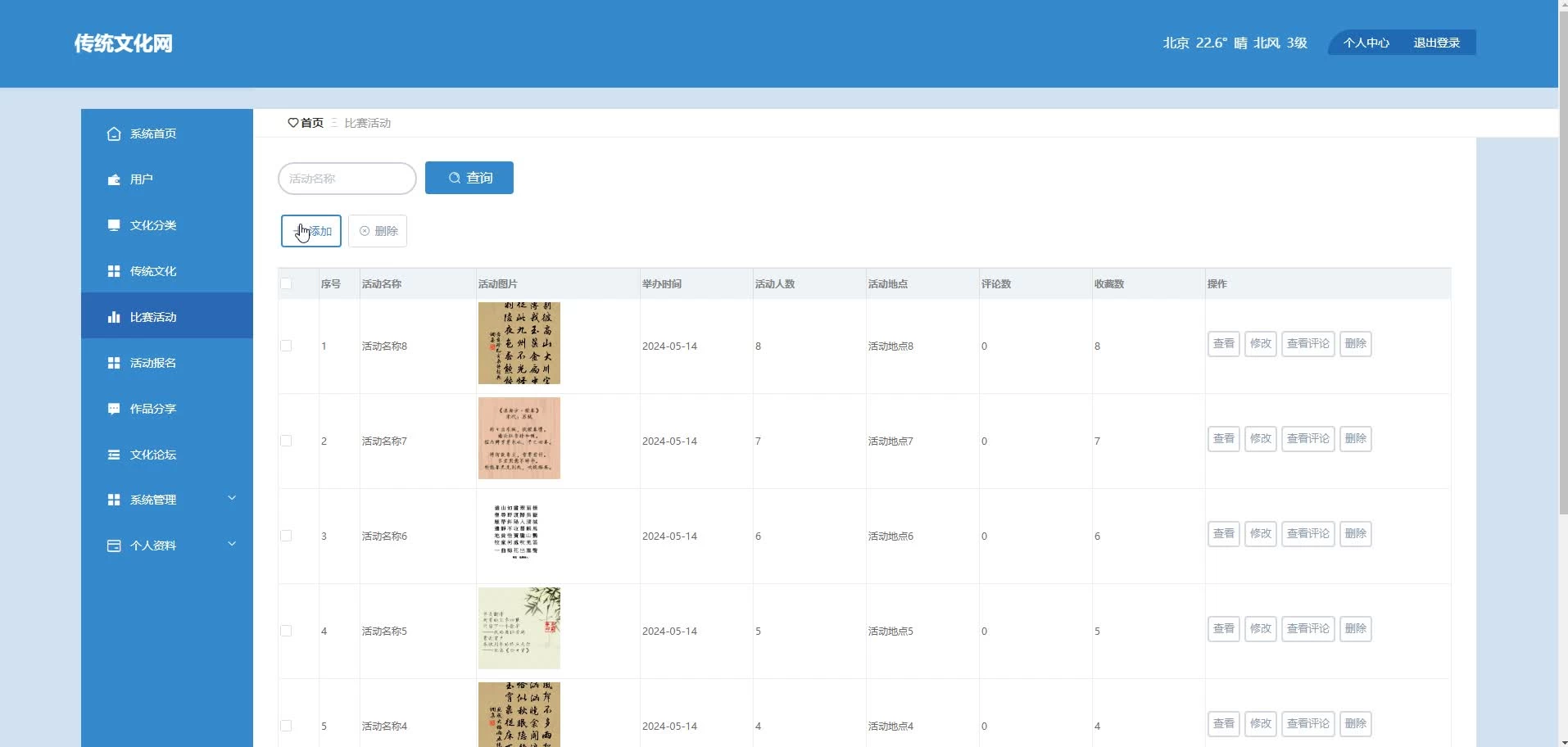 * 前台列表