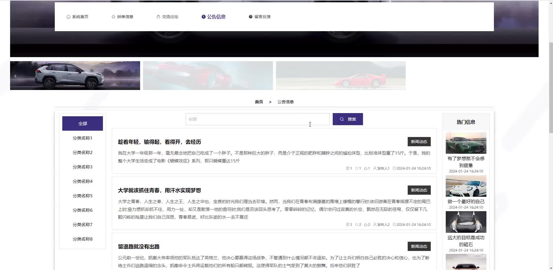 * 前台列表