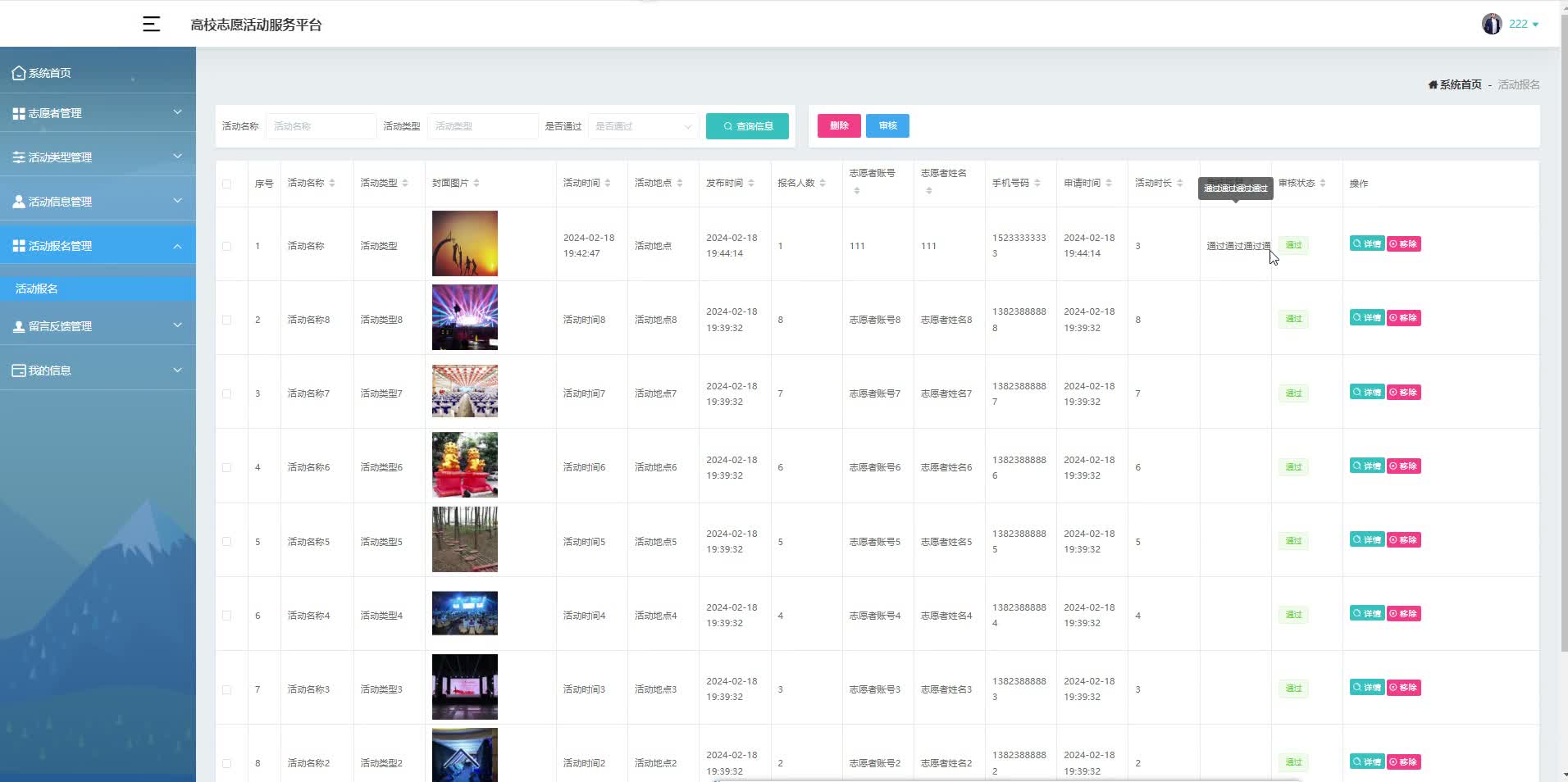 * 后台列表