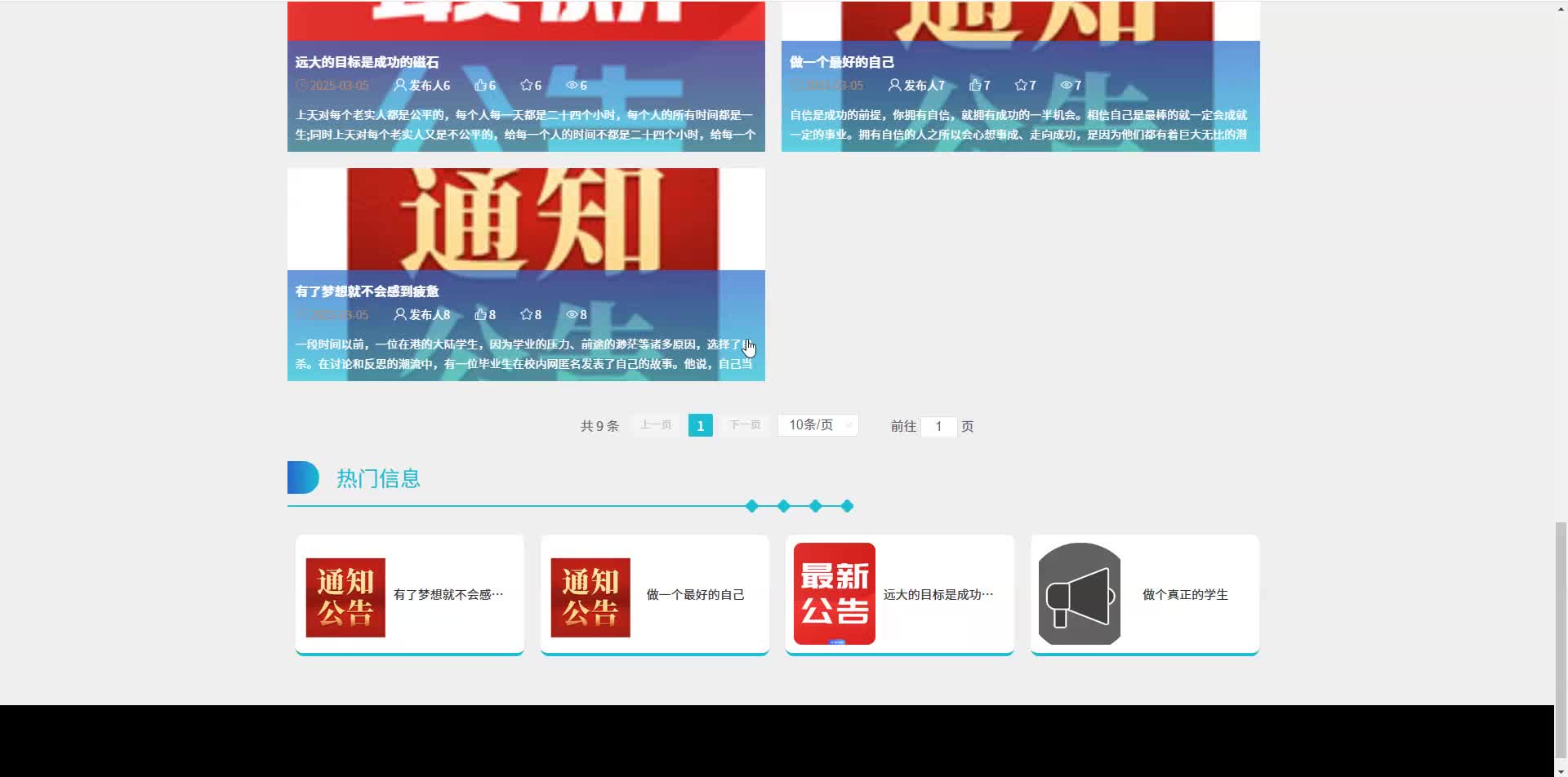 * 前台列表