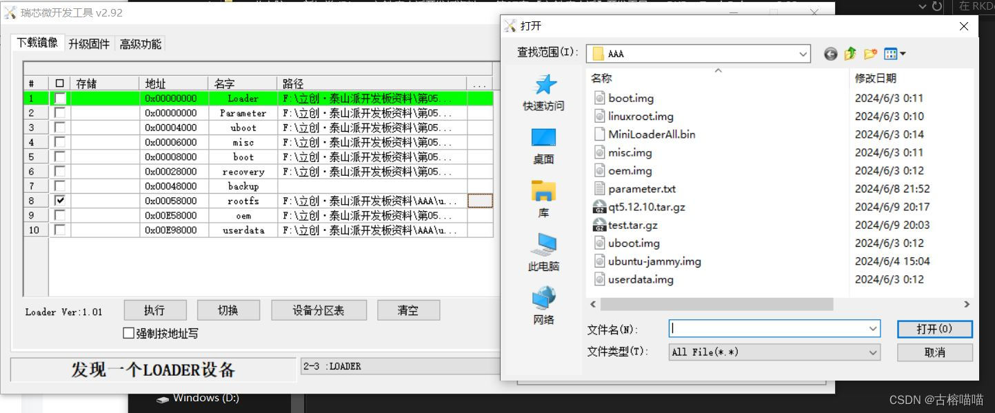 根文件系统写入,只需要写入rootfs栏即可,有时可能发生写入错误,此时可以通过勾选强制地址写入解决问题。