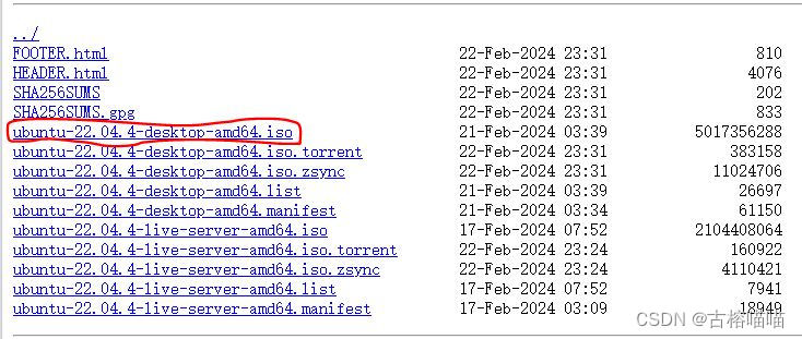 系统镜像下载:https://mirrors.ustc.edu.cn/ubuntu-releases/22.04/