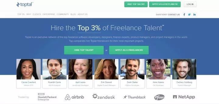 Toptal 是一个高端一些的自由职业者平台,适合比较有经验和工作尽力的远程工作者。它将企业与全球的软件工程师,设计师和业务顾问联系起来。