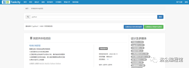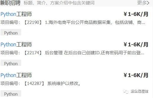 这个网站上面的python兼职比较简单,相对的薪资也会比较低,比较适合新手练练手。