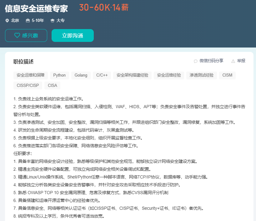 网络安全工程师已经直接跃升为国家战略型资源,成为众多企业“一将难求”的稀缺资源。